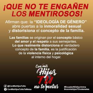 Afirmar que: la “IDEOLOGÍA DE GÉNERO” abre puertas a la inmoralidad sexual y distorsiona el concepto de la familia.