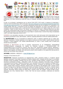 MANIFIESTAN: Federación Ecuatoriana de Organizaciones LGBTI, Asociación Silueta X, Fundación Alianza Igualitaria, Asociación Trans Global, Asociación de Padres y Madres LGBTI, Campaña Con Mis Hijos TU no te Metas, Campaña Tiempo de Igualdad, Campaña Amor es Amor, Campaña Familias Diversas, Fundación Diverso Ecuador, Asociación Ecuatorianos Diversos, Observatorio GLBTI del Ecuador, Asociación Comunidad Futura, Asociación Transmasculinos del Ecuador, Plataforma Revolución Trans, Asociación Es Mi Familia, Asociación de Milagro GLBTI, Observatorio anti-acoso Callejero, Asociación Bolivarianos Diversos, Afirmación de Mormones por las Familias GLBTI, Colectivo Mano Diversa de Machala, Colectivo GLBTI de Ventanas, Red Manabita GLBTI, Colectivo GLBTI de Santo Domingo de los Tsáchilas, Asociación Se tú Mismo de Pastaza, Coalición GLBTI del Oro, Colectivo Orgullo GLBTI de los Ríos, Colectivo GLBTI de Naranjito, Red Provincial de Esmeraldas, Colectivo Ciudad del Río de Quevedo, Movimiento líderes Diversos de Santa Elena, Colectivo GLBTI del Cotopaxi, Comité del Beso Diverso, Defensores de la Paz, Colectivos Sierra – Centro, Red Trans de Cuenca, activistas y defensores de Derechos Humanos.