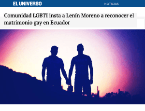 Fuente: https://www.eluniverso.com/noticias/2018/01/12/nota/6563400/comunidad-lgbti-insta-lenin-moreno-reconocer-matrimonio-gay-ecuador?amp&__twitter_impression=true
