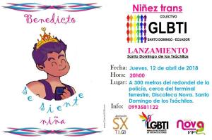 Niñez Trans – Lanzamiento de cuento infantil 9 abril, 2018 · de Redacción · en Acciones. · Niñez Trans Lanzamiento de cuento infantil Fecha: Jueves, 12 de Abril de 2018 Hora: 20h00 Lugar: A 300 metros del redondel de la policía, cerca del terminal terrestre, Discoteca Nova. Santo Domingo de los Tsáchilas Info: 0993581122 Comparte: Compartir en X (Se abre en una ventana nueva) X Comparte en Facebook (Se abre en una ventana nueva) Facebook Compartir en WhatsApp (Se abre en una ventana nueva) WhatsApp Compartir en Telegram (Se abre en una ventana nueva) Telegram