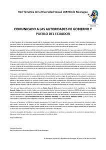 COMUNICADO A LAS AUTORIDADES DE GOBIERNO Y PUEBLO DE ECUADOR