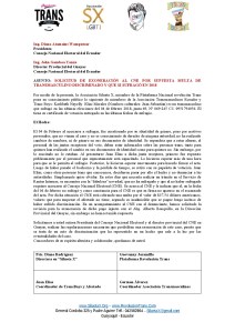 Por medio de la presente, la Asociación Silueta X, miembro de la Plataforma Nacional revolución Trans pone en conocimiento público lo siguiente de miembros de la Asociación Transmasculinos Ecuador y Trans Boys: Karlibeth Nayelly Elias Morales (Nombres culturales: Juan Sebastián) es un transmasculino que sufragó en las ultimas elecciones del 04 de febrero 2018, junta 69, Nº 069-245 C.I. 0951794056. Él tiene su certificado de votación entregado en las últimas fechas de sufragio.