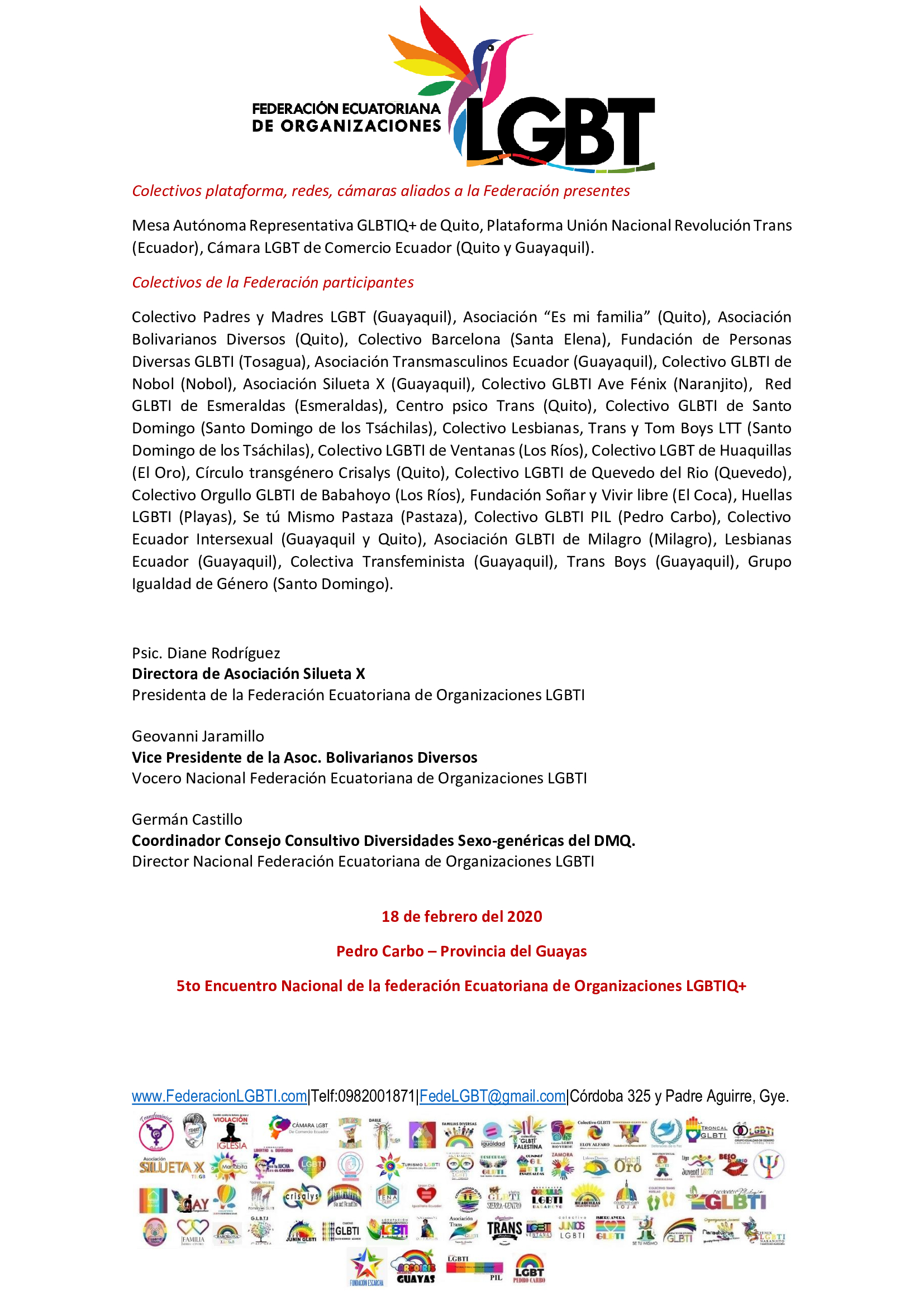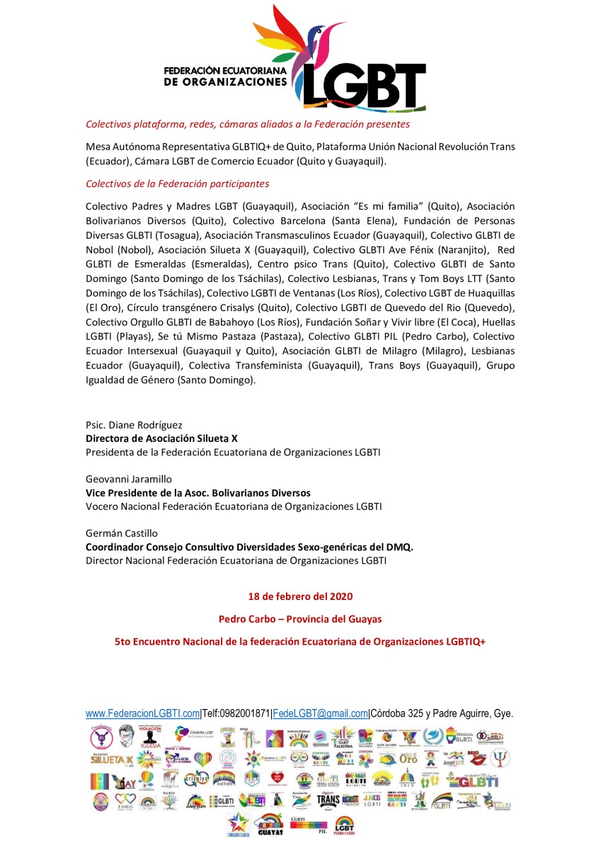Manifiesto – 5to Encuentro Nacional de Poblaciones Sexo Diversas – Federación Ecuatoriana de Organizaciones LGBT 3
