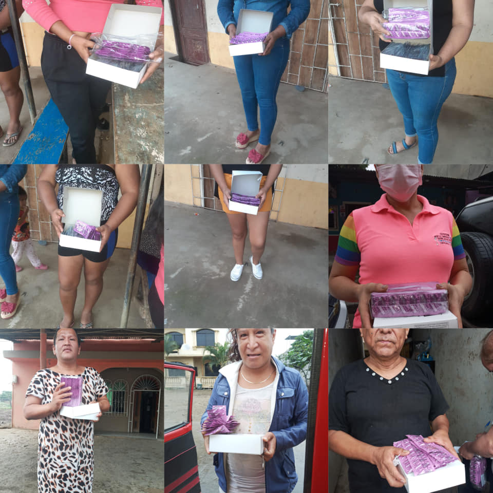 «Gracias Mgs.Janette Esther Eras Carranza – Directora Distrital 07D06 en coordinación con la Dra. Lixeth Blacio directora del centro de salud Santa Rosa se nos entregó a la Asociación de Comunidad Trans Estrellas del Futuro por segunda vez 2700 preservativos con 2700 lubricantes los mismos que serán entregados a la población lgbti del cantón santa rosa»