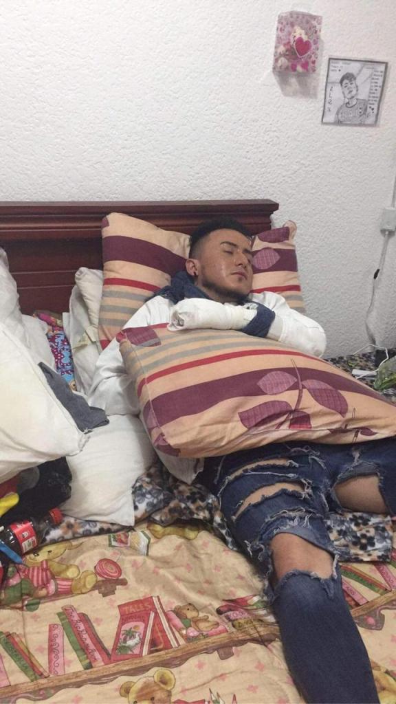 “Brevemente puedo decirles, que el martes se me acercaron tres tipos venezolanos que ya llevaban cerca de 10 minutos estudiándome, mientras esperaba el bus. En un momento de distracción y también de temor por la manera maliciosa y con odio que me miraban, sentí que se acercaban a mí. Cuando menos me di cuenta ya se encontraban cerca al punto que, inmediatamente me insultaron, sacaron un “mata-chancho o machete y sin ni siquiera pedirme mis pertenencias, que asumo las querían, procede uno de ellos a intentar acuchillarme por el área del corazón y el cuello. Con el ánimo de proteger mi vida me defendí mientras uno me intentaba acuchillar, los otros me quitaban mis pertenencias. Para evitar que me maten bloqueé las puñaladas dirigidas a mi corazón y garganta con mis manos, las cuales recibieron toda la violencia del momento. Todo esto paso en segundos. Si no me hubiese defendido con mis manos agarrando la hoja de la cuchilla, no estuviese vivo. Le debo la vida a mis manos y sobre todo mis dedos no los puedo mover. Los médicos me cocieron en un intento de rescatar mis dedos, pero no se sabe si la saturación que me hicieron servirá porque las hojas de las cuchillas cortaron los tendones, que dan movilidad a los dedos. Me dedico a la peluquería, al estilismo y ahora, no podré ni siquiera regresar a mi trabajo si pierdo la movilidad de mis dedos o incluso mis dedos por completo. No sé en que terminará todo esto. Necesito de ayuda.”