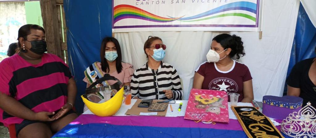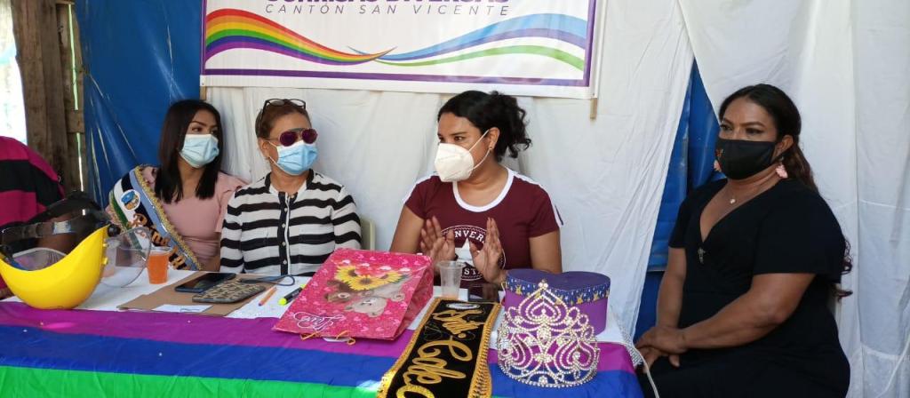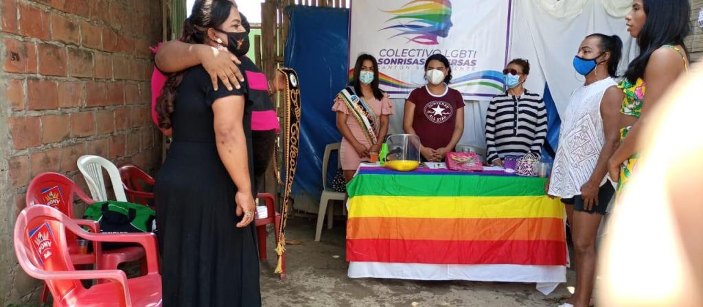 Mensaje de Diane Rodríguez sobre su visita a la Provincia de Manabi: “Finalmente, con el Colectivo Sonrisas Diversas de San Vicente de Manabi, concluimos la tarea de estructurar su directorio organizacional, escogido por unanimidad y adicional una coronación simbólica de una Reina, acto lúdico que practican nuestras poblaciones.