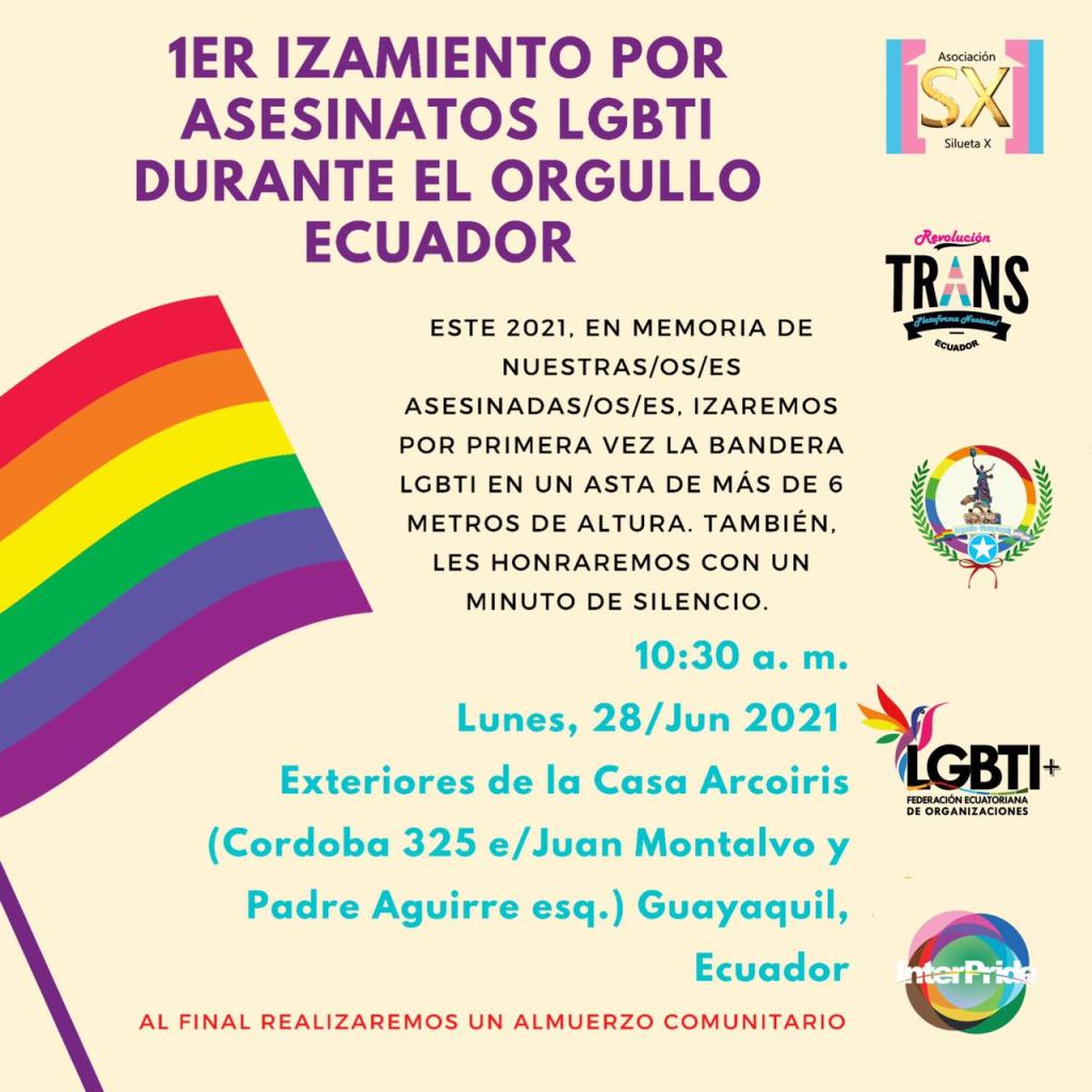 1er izamiento por Asesinatos LGBTI durante el Orgullo Ecuador