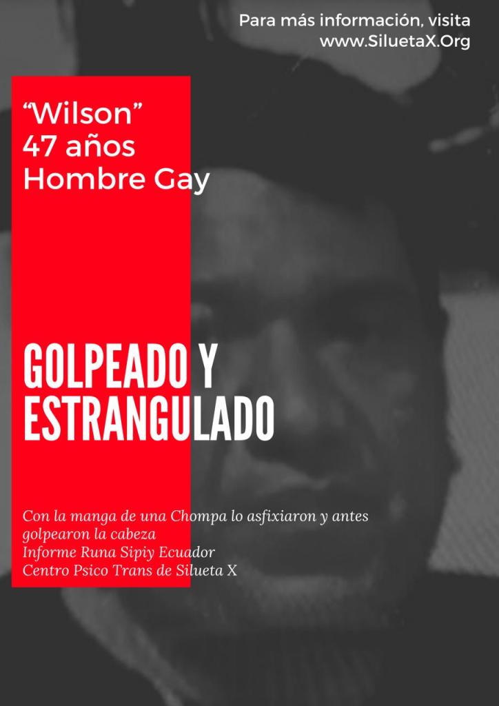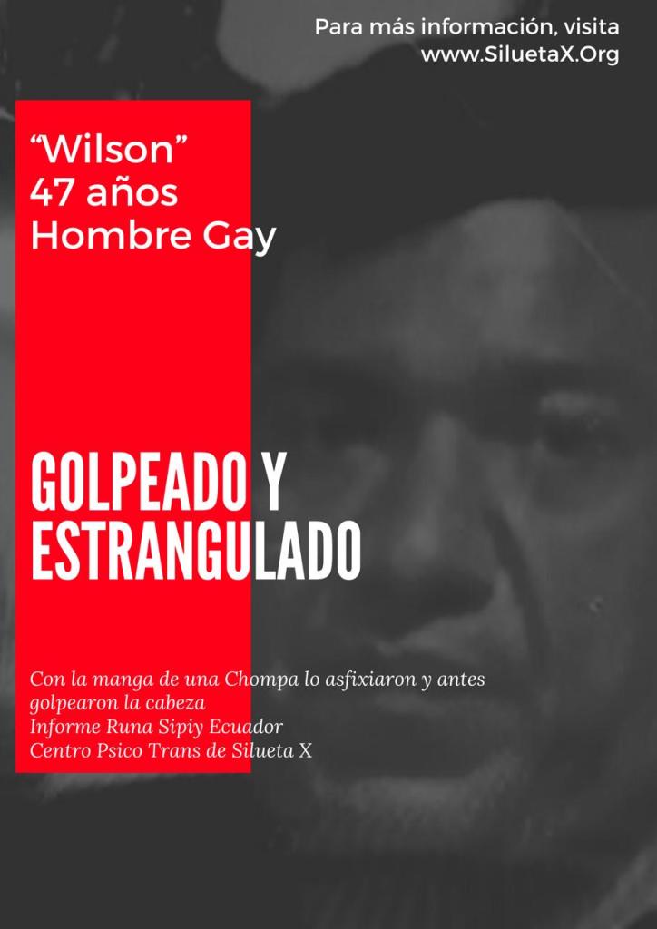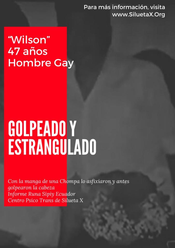 El 12 de Julio de 2021, Wilson Javier Guillén Suárez, de 47 años fue hallado dentro de su domicilio con huellas de estrangulamiento, ubicado en el Cristo de Consuelo Sur de Guayaquil. Wilson, era conocido por la comunidad LGBT sobre todo de la migrante en Europa. Según las primeras pesquisas, al parecer lo habrían estrangulado con la manga de su chompa.