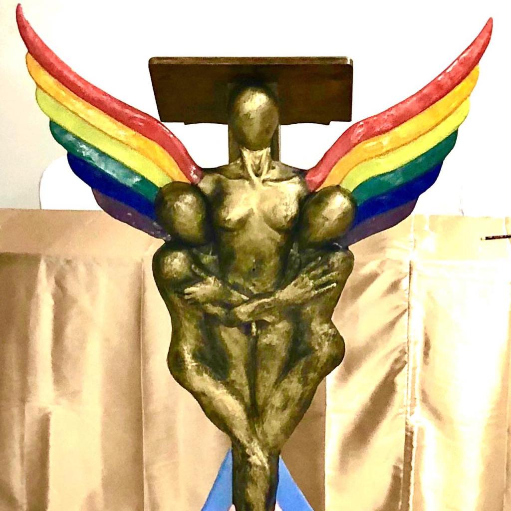 El podio del Centro Psico Trans fue intervenido por el artista Damian Perez, el mismo que materializa el cuerpo de una persona trans cuyo genitxl es masculine. A su vez tiene los pechos de una persona femenine. A sus extremos dos personas que representa la fusión de dos sexos/género. También cuenta con dos alas con los colores de la bandera LGBT+ y un plumaje en el inferior con los colores de la bandera trans.
