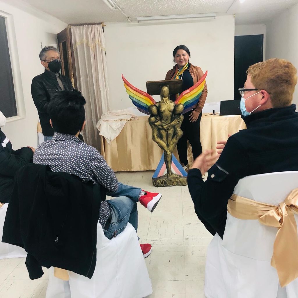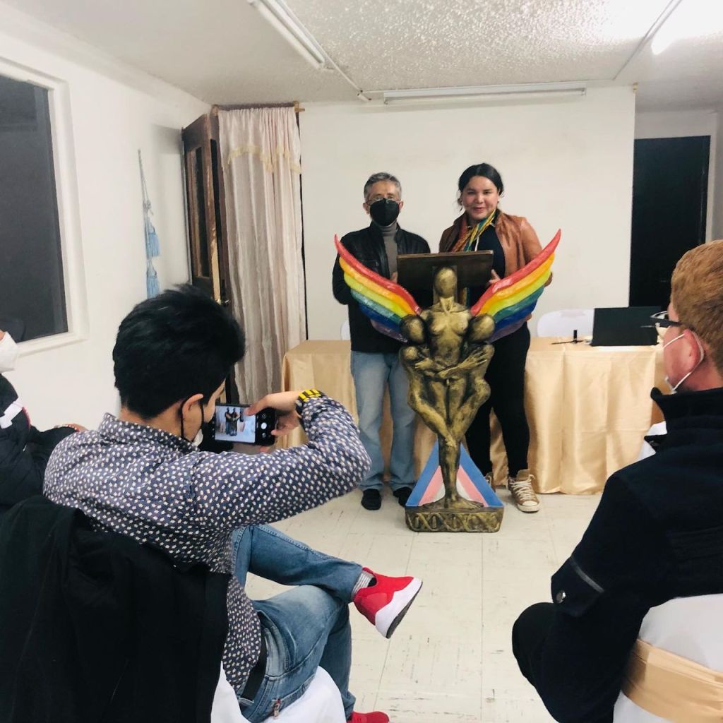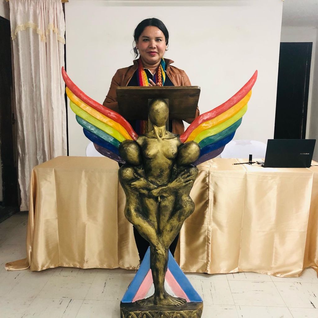 Este podio es una inversión del Centro Trans de Quito, con la finalidad de representar a modo de memorial los asesinatos de nuestras poblaciones.