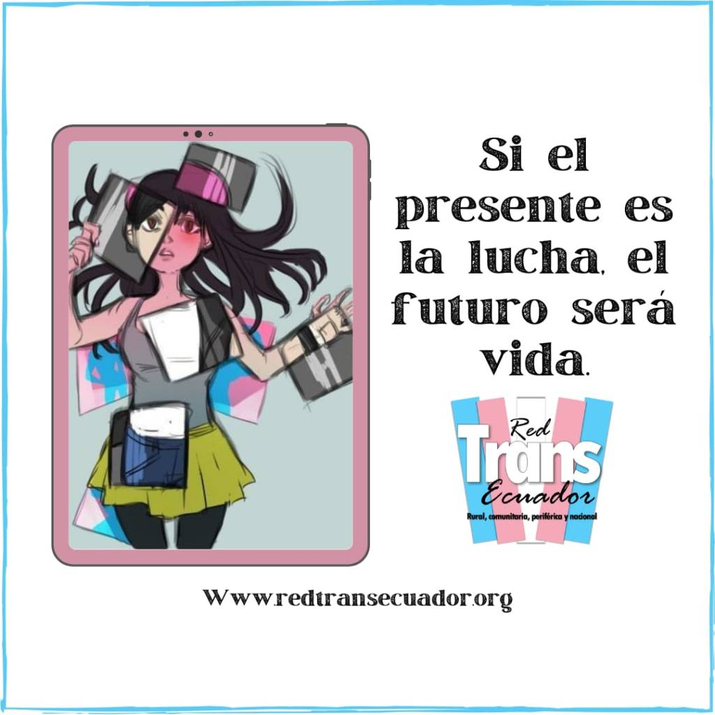 Si el presente es la lucha, el futuro será vida. 13 abril, 2022 · de Anunciante · en Acciones, Actividades. · #NuevaRedTransEcuador #PlataformaNacionalTrans #RedTransEcuador #RevolucionTrans Www.redtransecuador.org Comparte: Compartir en X (Se abre en una ventana nueva) X Comparte en Facebook (Se abre en una ventana nueva) Facebook Compartir en WhatsApp (Se abre en una ventana nueva) WhatsApp Compartir en Telegram (Se abre en una ventana nueva) Telegram