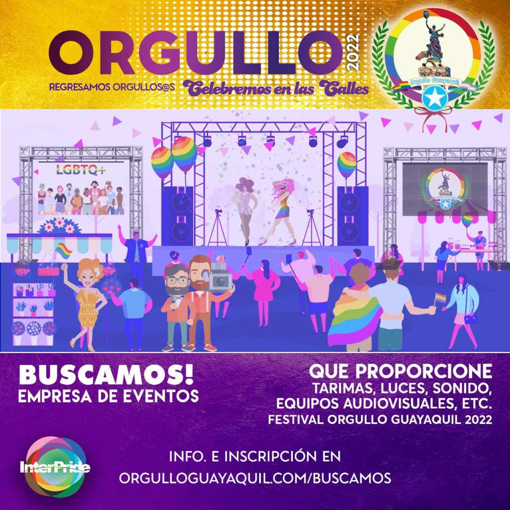 Buscamos EMPRESA DE EVENTOS para tarima, luces, sonido, equipo audiovisual, etc. durante #OrgulloGuayaquil, que ofrezca una proforma o acuerdo.