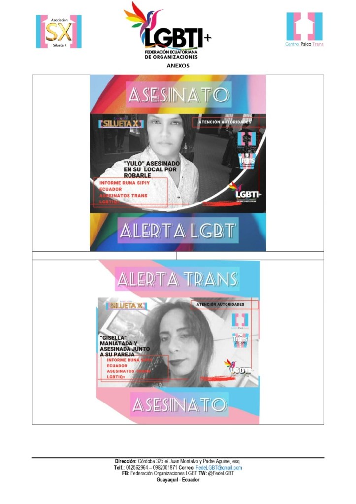 El Informe Runa Sipiy de la Asociación Silueta X, registra que, con estos hechos de mayo, junio y julio, son ya 17 asesinatos, transfemicidios, muertes violentas no esclarecidas o sospechosas de criminalidad en contra de nuestras poblaciones, a nivel nacional.