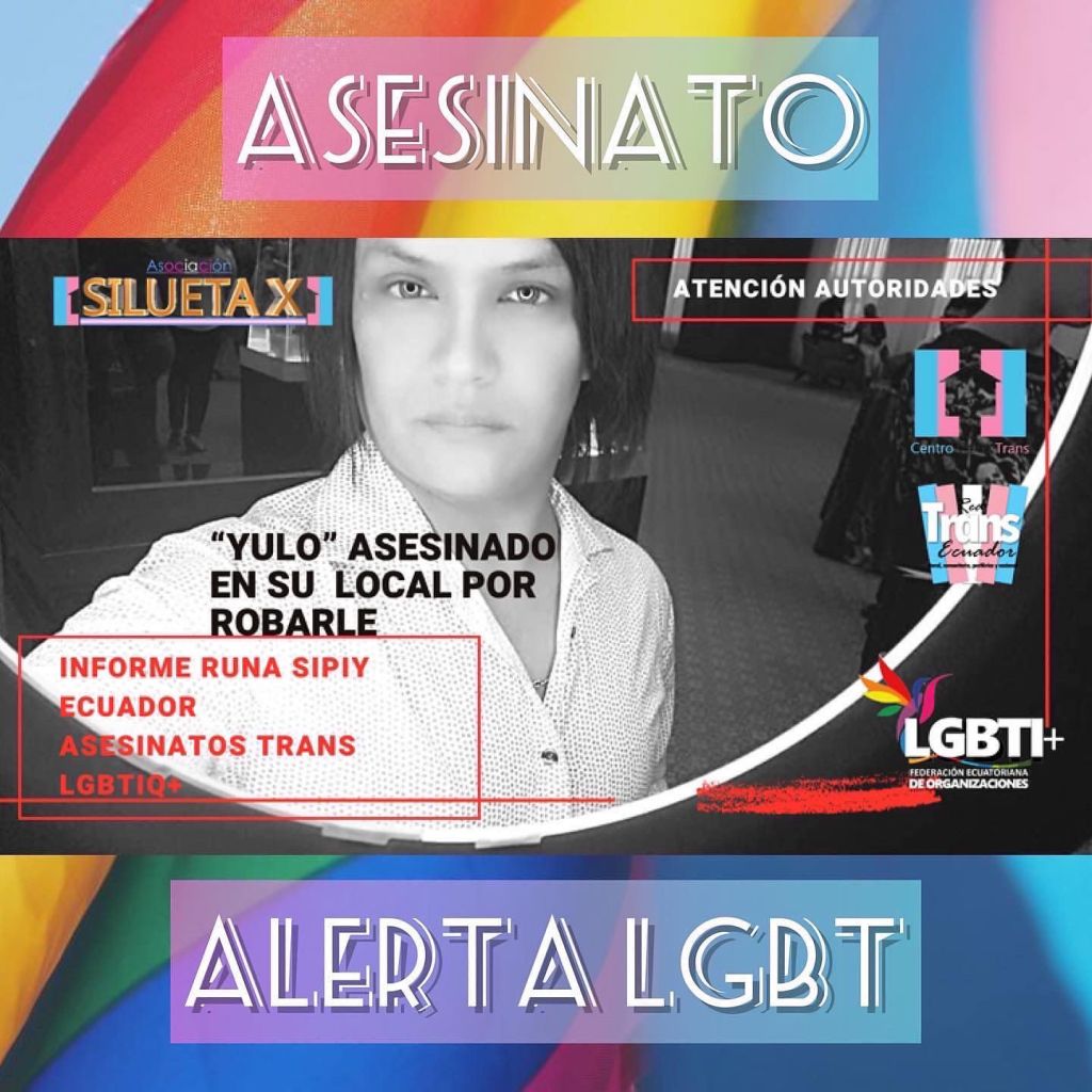 Por todo lo descrito hacemos un llamado a la fiscal general del Estado, Diana Salazar, al comandante de la Policía, Carlos Cabrera, al subsecretario de Diversidades Alexander Guano, al defensor del Pueblo de Ecuador (e), Cesar Córdoba Valverde, a realizar las coordinaciones necesarias para dar con el o los culpables, de este hecho que enluta nuevamente a nuestra comunidad.
