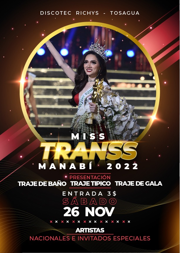 Miss Trans Cantón Tosagua de la Provincia de Manabí 23 noviembre, 2022 · de Anunciante · en Acciones, Actividades. · Comparte: Compartir en X (Se abre en una ventana nueva) X Comparte en Facebook (Se abre en una ventana nueva) Facebook Compartir en WhatsApp (Se abre en una ventana nueva) WhatsApp Compartir en Telegram (Se abre en una ventana nueva) Telegram