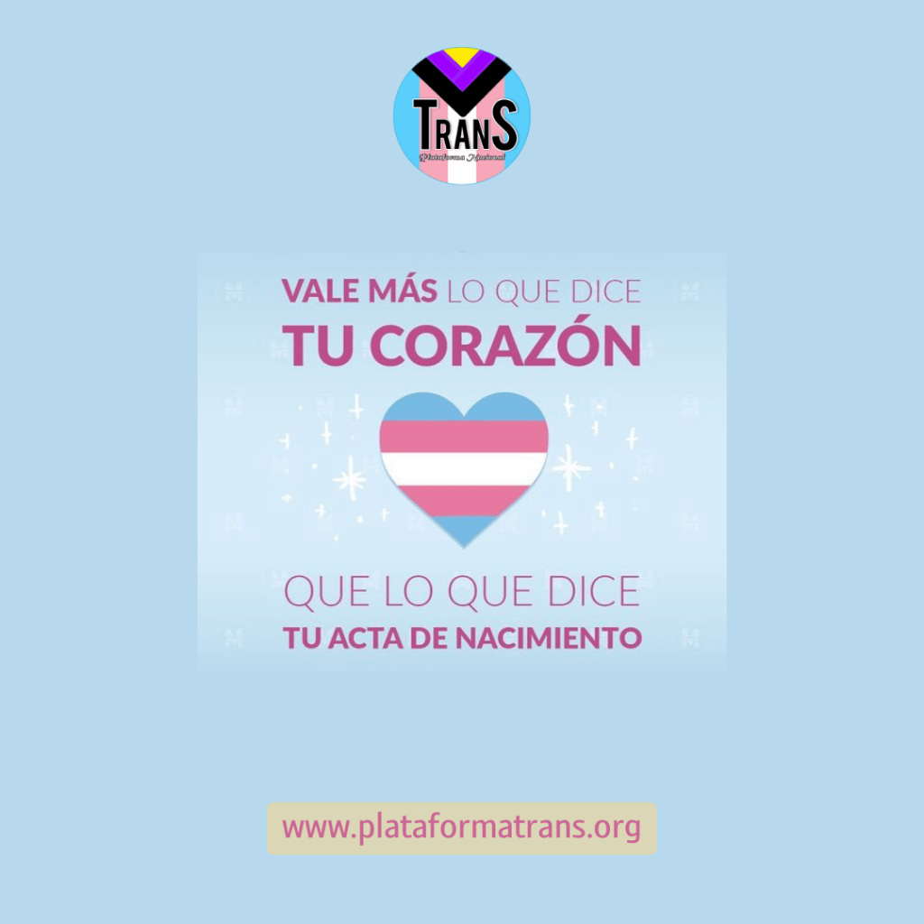 Vale más lo que dice tu corazón que lo que dice tu acta de nacimiento 6 junio, 2023 · de Moderador · en Acciones, Actividades. · Fuente: NuevaRedTransEcuador PlataformaNacionalTrans RedTransEcuador RevolucionTrans Www.redtransecuador.org Comparte: Compartir en X (Se abre en una ventana nueva) X Comparte en Facebook (Se abre en una ventana nueva) Facebook Compartir en WhatsApp (Se abre en una ventana nueva) WhatsApp Compartir en Telegram (Se abre en una ventana nueva) Telegram