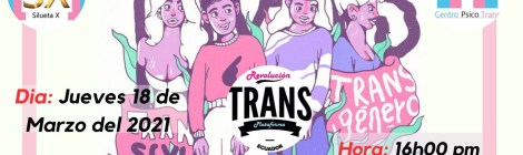 Taller de Empoderamiento Trans Dia: Jueves 18 de Marzo del 2021 Hora: 16h00 pm Dirección: Córdova 325 y Padre Aguirre Información: (04) 2562964