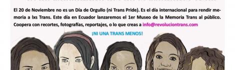 1er Museo a la memoria Trans El 20 de Noviembre no es un Día de Orgullo (ni Trans Pride). Es el día internacional para rendir memoria a lxs Trans. Este […]