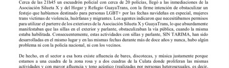 COMUNICADO: Nos preocupa el posible retorno de la persecución a LGBT+ y mujeres trans a manos de la Policía Nacional, sufridos en la década de los 90.