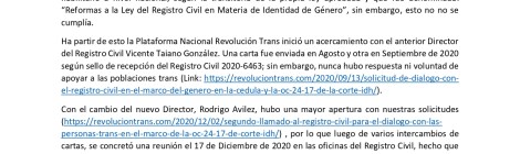 BOLETÍN DE PRENSA GRACIAS A LA INCIDENCIA DE LA PLATAFORMA NACIONAL REVOLUCIÓN TRANS EL REGISTRO CIVIL HABILITA EL GÉNERO EN LA CÉDULA A NIVEL NACIONAL Aún existen demandas pendientes- La […]