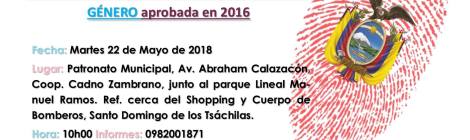 Evaluación Nacional de la LEY DE IDENTIDAD DE GÉNERO APROBADA en 2016 Fecha: Martes 22 de Mayo de 2018 Lugar: Patronato Municipal, Av. Abraham Calazacón, Coop. Cadno Zambrano, junto al […]
