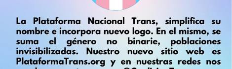 Comunicado La Plataforma Nacional Trans, simplifica su nombre e incorpora nuevo logo. En el mismo, el género no binario, poblaciones invisibilizadas. Nuestro nuevo sitio web es PlataformaTrans.org y en nuestras […]