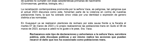 Quito, lunes 4 de agosto de 2025 La Asociación Silueta X, organización miembro de la Federación Ecuatoriana de Organizaciones LGBT y de la Plataforma Nacional Trans – CoaliTrans, expresa su […]