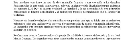 COMUNIDADO PÚBLICO Discriminación a Pareja Homoparental en el Registro Civil Zonal 7 del Oro. El Centro Psico Trans de Quito de la Asociación Silueta X, miembros de la Plataforma Nacional […]