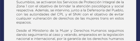 Ponemos en conocimiento que luego de nuestro comunicado, el Min. De la mujer y DD.HH manifiesta: Fuente:Comunicado previo #PrisioTrans 👉🏼 https://m.facebook.com/story.php?story_fbid=1850228318695164&id=100011240419512&mibextid=qC1gEa